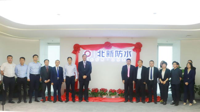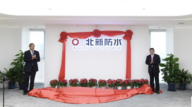 ▲2021年9月29日,北新防水有限公司在北京未来科学城举行揭牌仪式,中国建筑防水协会秘书长朱冬青、北新建材董事长王兵为北新防水有限公司揭牌。