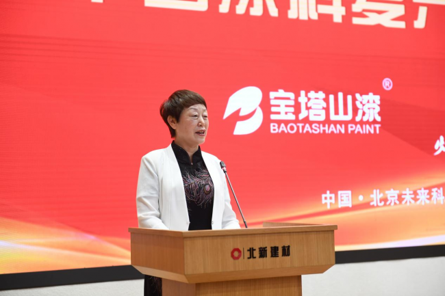 孙莲英会长在讲话中代表中国涂料工业协会对中国涂料复兴联盟正式启动表示祝贺,对北新建材积极推动涂料复兴做出的不懈努力表示感谢,对联盟第一批发起成员单位积极参与表示感谢。孙会长简要回顾了中国涂料行业100年的艰辛发展历程。她表示,中国大漆8000年历史,漆器与瓷器丝绸一样是国家名片。实现中国涂料的复兴重任应该在我们这一代涂料人手里完成,如何在重要领域实现跨越发展,加快向涂料强国迈进,早日实现中国涂料梦,是中国涂料工业肩负的使命和责任。中国涂料复兴联盟的成立吹响了助力中国涂料复兴的集结号,开启了中国向涂料强国迈进的新征程,对整个涂料行业具有重要意义。北新涂料带着央企使命、责任、担当加入联盟,为中国涂料复兴之路注入了正能量,助力加快实现中国涂料梦。她呼吁,中国涂料行业有识之士积极加入中国涂料复兴联盟,共同为中国涂料复兴的目标努力,建立中国涂料品牌自信,实现技术创新突破,攻克卡脖子工程,推动涂料行业高质量发展,为实现人民对美好生活的向往不懈努力,推动中国向世界涂料强国迈进,早日实现涂料强国梦,为中国民族的伟大复兴作出积极贡献。
