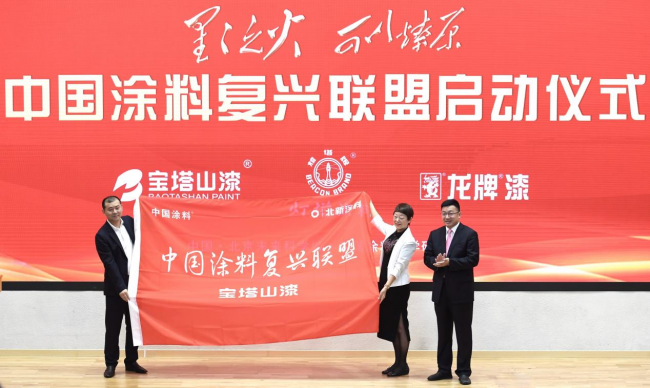 中国涂料复兴联盟由中国涂料工业协会牵头发起成立,北新涂料为骨干成员单位,宝塔山、灯塔涂料、龙牌涂料为首批联盟启动成员单位,中国涂料工业协会孙莲英会长担任联盟主席。联盟的成立旨在凝聚涂料行业优秀企业和高等院校科研院所力量,推动中国涂料行业科技创新解决卡脖子工程、推动中国自主涂料品牌自信和产业复兴,为中华民族的伟大复兴做出积极贡献。
