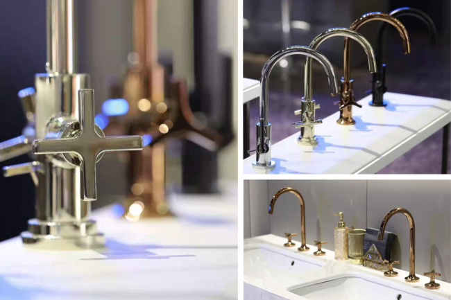 在核心展台上的新品KLUDI NOVA FONTE,除了经典白银款和人气雅黑款,今年还推出奢金、玫瑰金两种奢华色彩,充分满足“颜值时代”的需求。代表三重风格的三款把手,与四种色彩组合搭配,诞生出极简现代、摩登经典、前卫时尚等覆盖当代都市精英的广谱审美的设计。