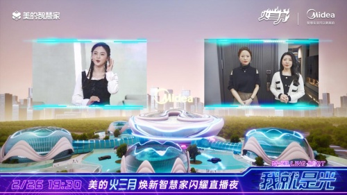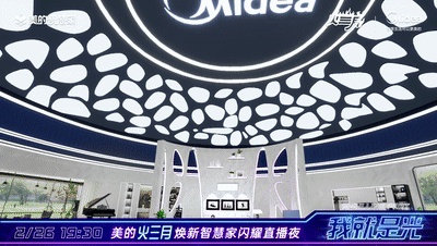 2022年2月26日,借助美的到家直播平台,美的火三月焕新智慧家闪耀直播夜活动正式开始,5G连线启动,XR虚拟拓展技术引擎震撼开启元宇宙世界,极具未来感的元宇宙视觉大秀终于启幕。