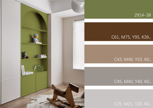 绿色是宁静的。大自然是充满奇妙色彩的,绿色也有它不同层次的绿,给人以不一样的生命感觉。整个空间铺上深浅不同的绿,与生俱来的治愈力,仿佛置身于森林,能够让我们的神经在环境下变化起来,抚平焦躁不安,变得宁静。特别适合想要打造小清新,自然、舒适为主的空间。