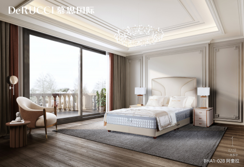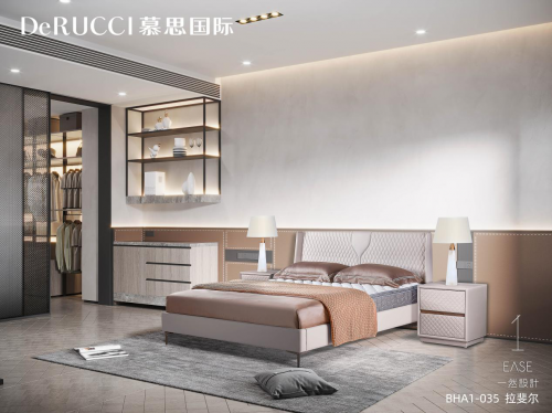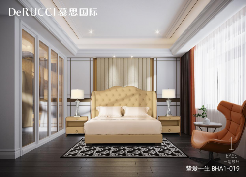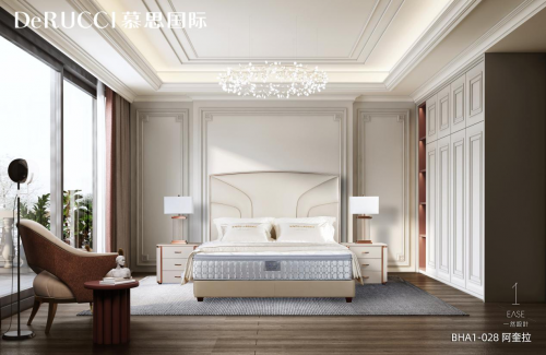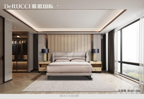 慕思国际BHA1-028阿奎拉因对物件的极致匠心而生。高达160cm的床屏,平滑极简的线条感,对床具制作师的工艺和纳帕真皮原料的要求达到近乎严苛的高度。必须采用颜色一致、纹理一致、没有破损瑕疵的大块真皮,配上制作师高超的制作技艺,才能保证整张床平滑美观。别墅空间的设计与此有异曲同工之处,极宽敞的空间里,如何保证细节与整体的一致,保证空间的对话,设计师对空间调性和产品品味的把控,显得尤为重要。