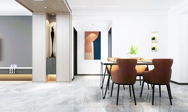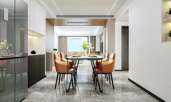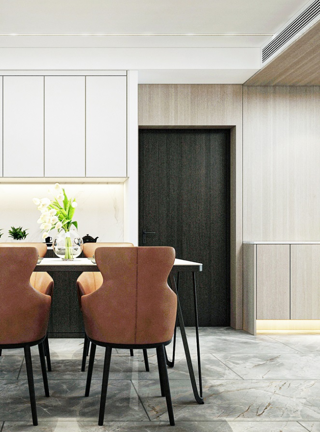 拥揽绝佳视野与采光的餐厅,在清逸淡雅的定制底色上,让餐桌椅的设计透过形态、材料、色泽与细节,透露出对简约美学的严谨思考,十分出彩。搭配一抹花卉,带来从视觉到味蕾的愉悦感。
