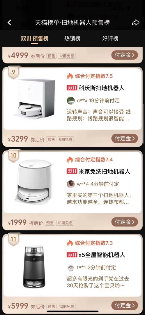 据悉,INXNI以内全屋智能机器人X5一经发布,就吸引了大批消费者的关注,10月12日开启预售后,日前已进入天猫榜单-扫地机器人预售榜前十一名。目前仍在双十一火热抢购中!
